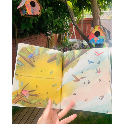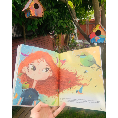 İşte bu coşkuyu fark eden Leyla Aslan, “Bir Kuş Olsam” kitabında kuşların ve çocukların sesini duyup onları anlayarak bu benzerliği kelimelere döküyor. Gökyüzünde binlerce kuş, şenlikle uçarken doğanın o muhteşem duygusunu kitaba çeviriyor.